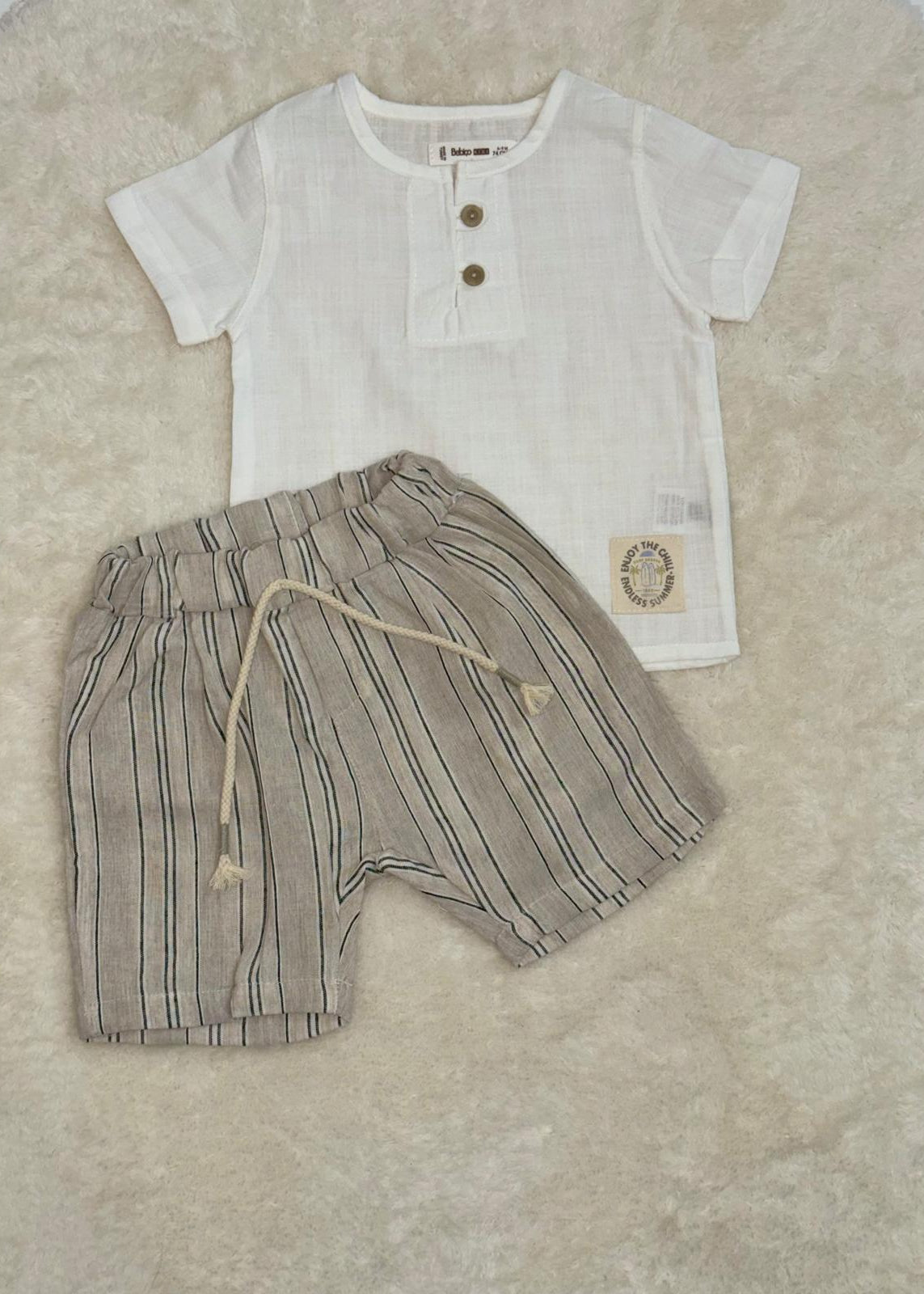 Çizgili Müslin Şortlu Erkek Bebek Takımı