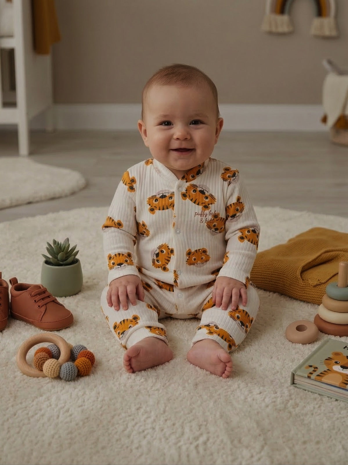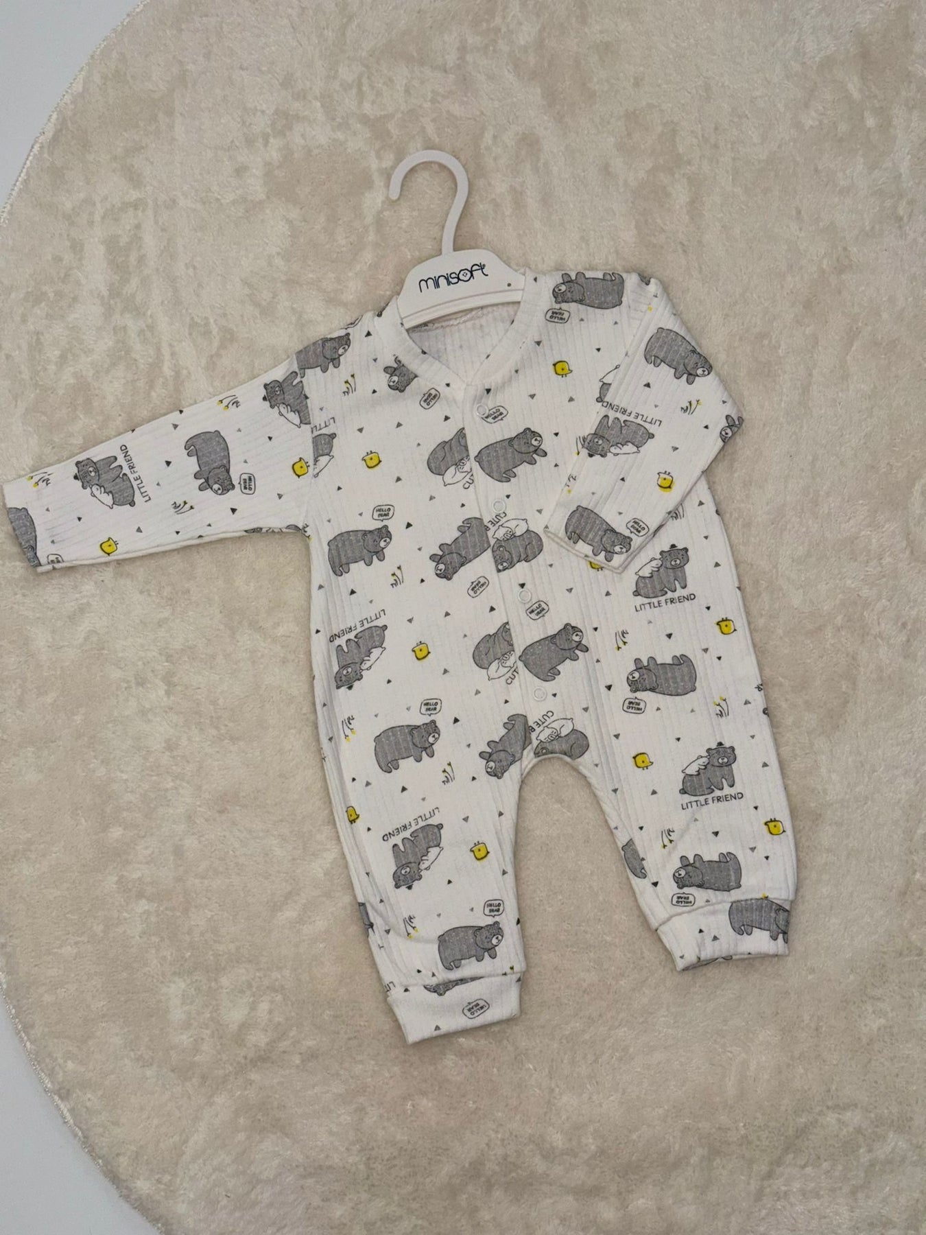 Bebeğinizin içerisinde özgürce rahat edebileceği bu tulumlar patiksiz özelliği ile minik ayakları özgür bırakıyor. Pamuk kumaştan üretilen bu tulumlar fitilli yapısıyla bebeğinizin cildini sıkmadan sarıyor yumuşacık dokusu ve farklı hayvan figürleri ile gardırobunuzun vazgeçilmezi olacak.